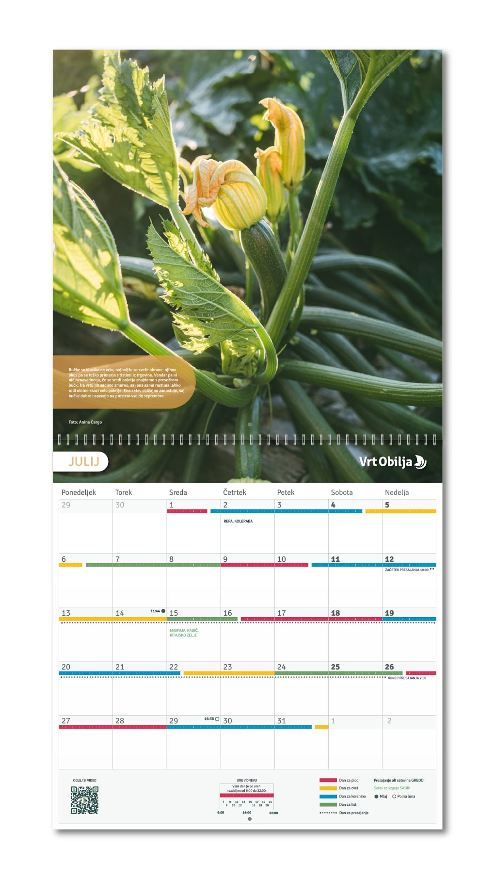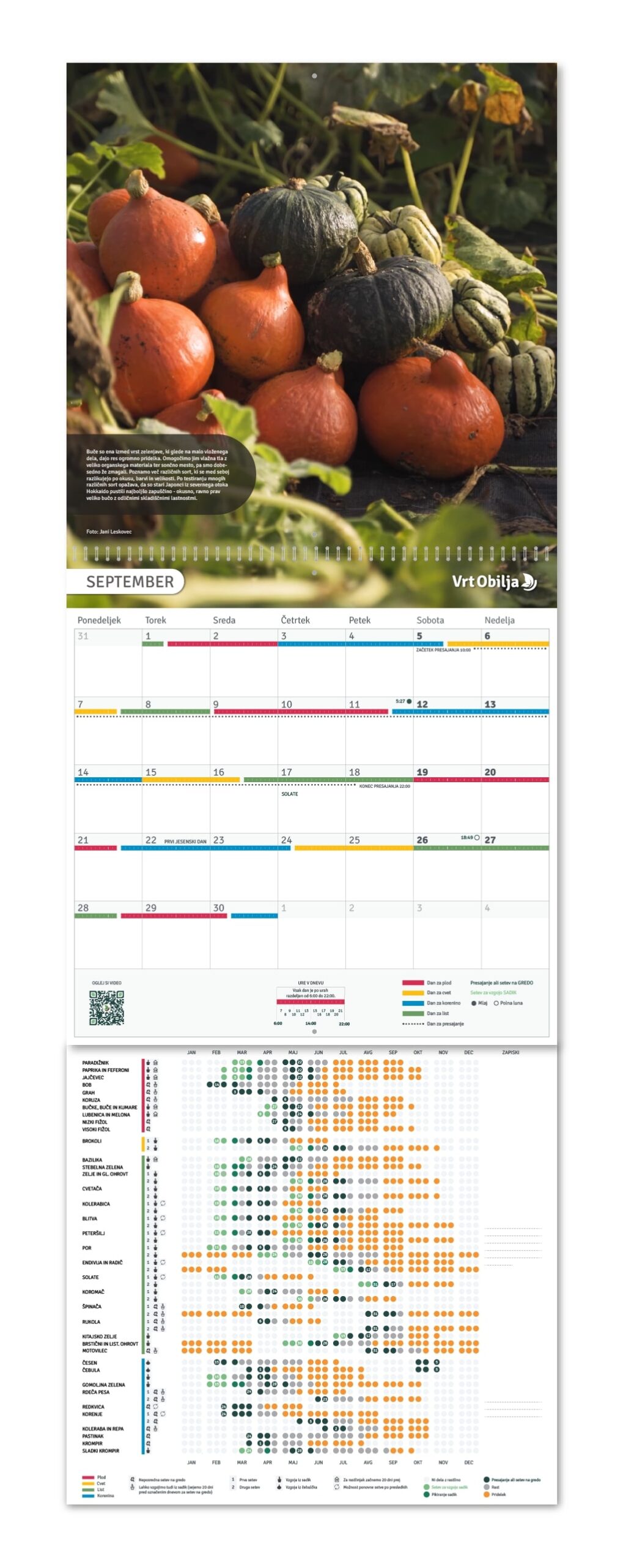 Vrtnarski koledar je z namenom velik, da smo nanj lahko spravili več informacij, koti jih nudi preprosti setveni koledar! Le tako je lahko tudi dovolj pregleden, ter nudi dovolj prostora za zapiske. Oglej si fotogalerijo detajlov, ki smo jih vključili v sam koledar.